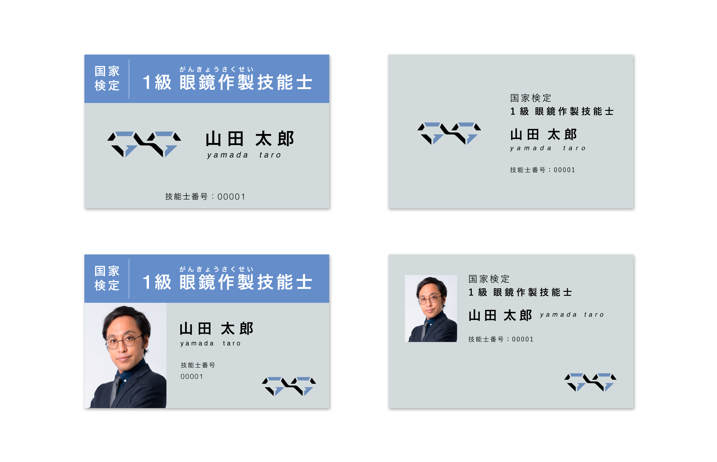 名札にご利用される場合の、眼鏡作製技能士のロゴダウンロードページです。また名札デザインの参考見本もご用意しております。